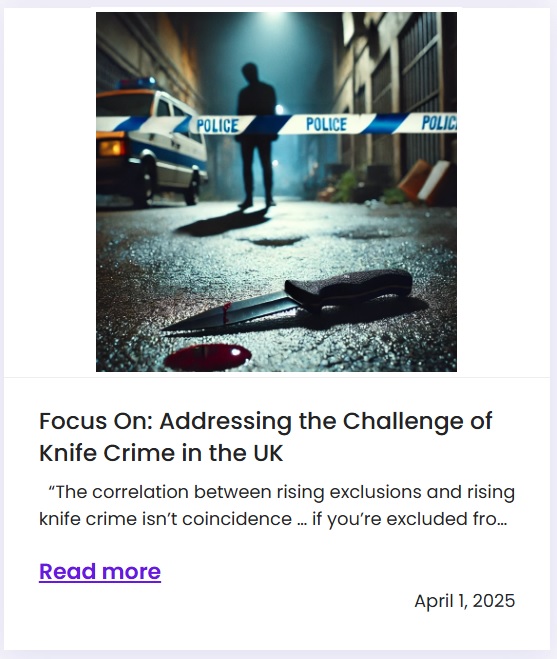 This piece addresses the critical social and criminal justice challenge of knife crime in the UK. It emphasises the need for an integrated, multi-agency strategy to address underlying causes and intervene during “reachable moments” to divert young people from violence. The article underscores the importance of data in monitoring effectiveness and coordinating efforts across different teams and agencies. |